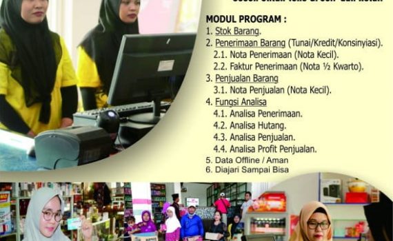 Program kasir untuk toko grosir dengan penerapan sistem harga bertingkat bagi pelanggan. kelipatan harga akan menghasilkan point yang bisa diatur sesuai dengan margin profit barang, point biasanya diberikan setelah lebaran setiap tahunnya. Hingga saat ini paling banyak dipergunakan di Madura bisa dilihat di Menu KLIEN PENGGUNA lebih dari 40 (empat […]